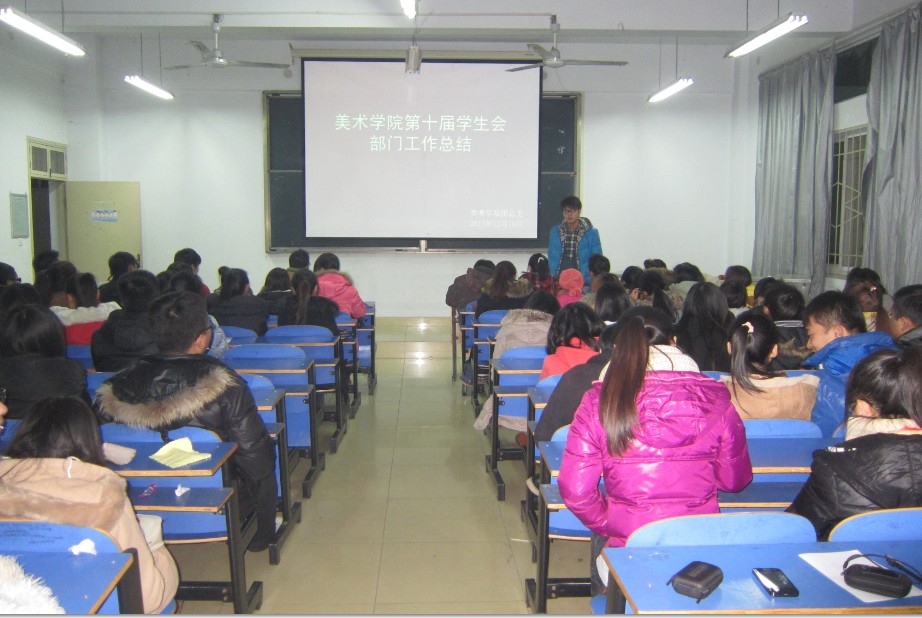 会上,员工会各部门成员代表以ppt演讲的方式,从部门活动、活动概况、活动总结、不足与改正和下阶段计划与展望几个方面对本学期的工作做出了总结,各部门也力求在举办本部门特色活动的过程中实现突破与创新积极找出不足,并提出解决方案。分管副主席分别针对自己所分管部门存在的问题提出建设性的意见和建议,并鼓励大家继续努力,积极解决本部门所存在的问题,随后,主席雷永振对各部门上学期的工作情况作出了肯定,并对2013级的新干事们提出了新的工作要求,他希望各部门部长与副部长,起到模范带头作用改进工作方法,带领部门干事在工作上取得新的突破。