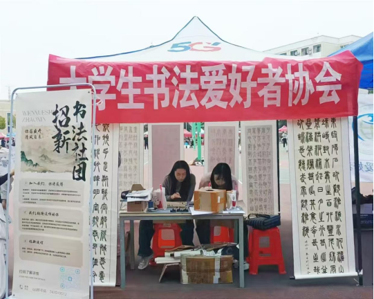近日,随着新学期的帷幕拉开,为丰富新同学们的校园文化生活,公司老员工书法爱好者协会积极参与了于10月11日在365英国上市公司东操场举办的“百团大战”招新活动。在这场汇聚了众多社团的盛宴中,老员工书法爱好者协会凭借其独特的艺术魅力和深厚的文化底蕴,成功吸引了众多新生的关注,成为招新现场的一大亮点。
