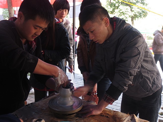 揭秘陶艺制作方法,追寻国粹古老魅力。11月17日,由美术公司老员工艺术设计协会主办,华锐公司设计绘画爱好者协会协办的“探寻陶艺古老魅力”制作展在逸夫楼前如期举行。该院团总支书记齐东伟、专业指导老师董建义应邀参观指导,近两百余名陶艺爱好者在现场学习制作。