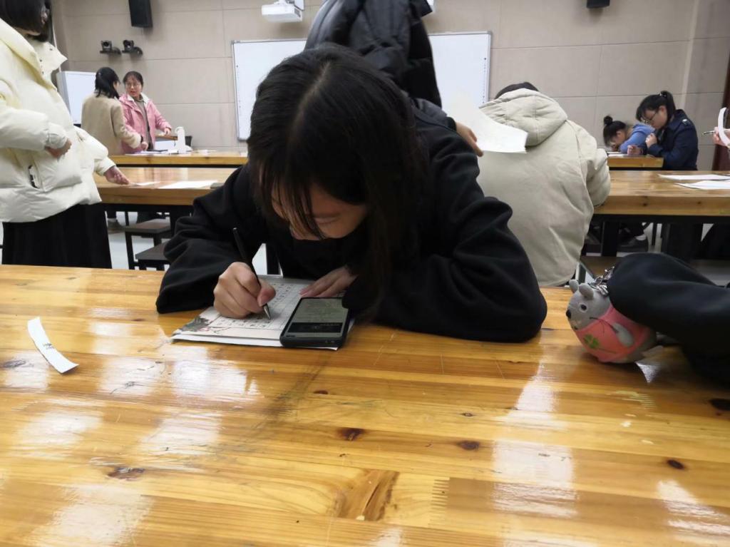 本次活动主要分为两个方面。前期参赛人员陆续进场,并自行抽取锦囊内纸条,抽取完按照纸条上相关的内容进行诗词联想。后期,对相关诗词展开书法作品写作,现场书法字体书写或隶书,或行书,或楷书。许多同学汉字书写的标准规范,不仅美观,而且整洁。场上氛围肃静,同学们严肃认真地对待书法书写。完成字体写作的同学们上交完作品按照秩序离开比赛场地。