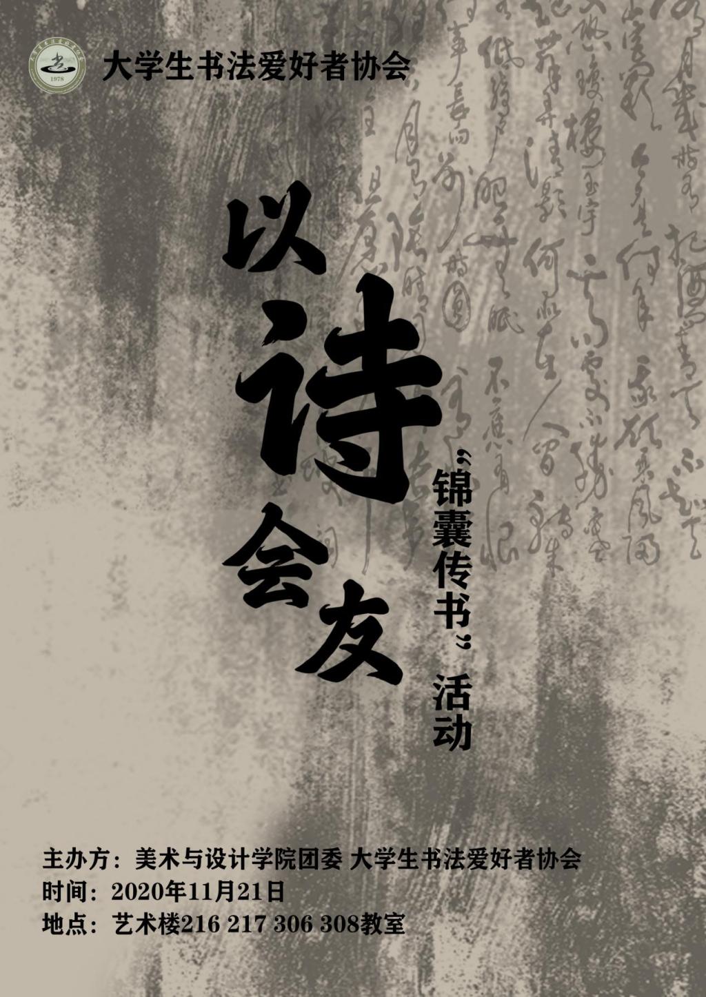 为了丰富老员工们的校园文化活动,公司老员工书法爱好者协会于11月21日在艺术楼216,217,306,308教室举办了“以诗会友,锦囊传书”活动。活动由书协会长赵梦柯主持。
