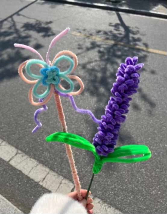 活动中,同学们激情满满,认真创作,会在缺少某种颜色的扭扭棒时,和周围的人相互帮助,彼此交换所需,也会时不时分享彼此的灵感与技巧,互相学习和启发,在艺术与手工技巧的结合中找到乐趣。大家的作品趣味十足又富有美感,兼具亮丽色彩与独特风格,充满艺术的气息,充分展现了艺术的风采。