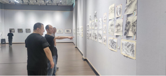 开幕式上,邹东升充分肯定了本次考察写生课程教学活动的优秀成果,赞扬了同学们爱学习、肯吃苦、能奋斗的学习态度,鼓励同学们要继续保持对艺术的热爱,坚持创作、用心创作,将公司本科生应有的艺术创作水平予以展现。同时,他还对2021级毕业创作做了安排,要求教师员工从大四上学期着手准备,留足时间创作,争取创作了一批优秀的高质量毕业作品。张江波对本次写生考察的宗旨进行了说明,对展览的后续工作进行了安排。开幕式结束后,带队教师与同学们现场交流座谈。同学们踊跃发言分享了自己考察写生的收获。带队教师则从专业创作角度和同学们做了交流点评,举例说明了各种细节需要理解掌握的绘画技巧,分析了同学们创作过程中的得与失,鼓励同学们积极创作,积极参加比赛。