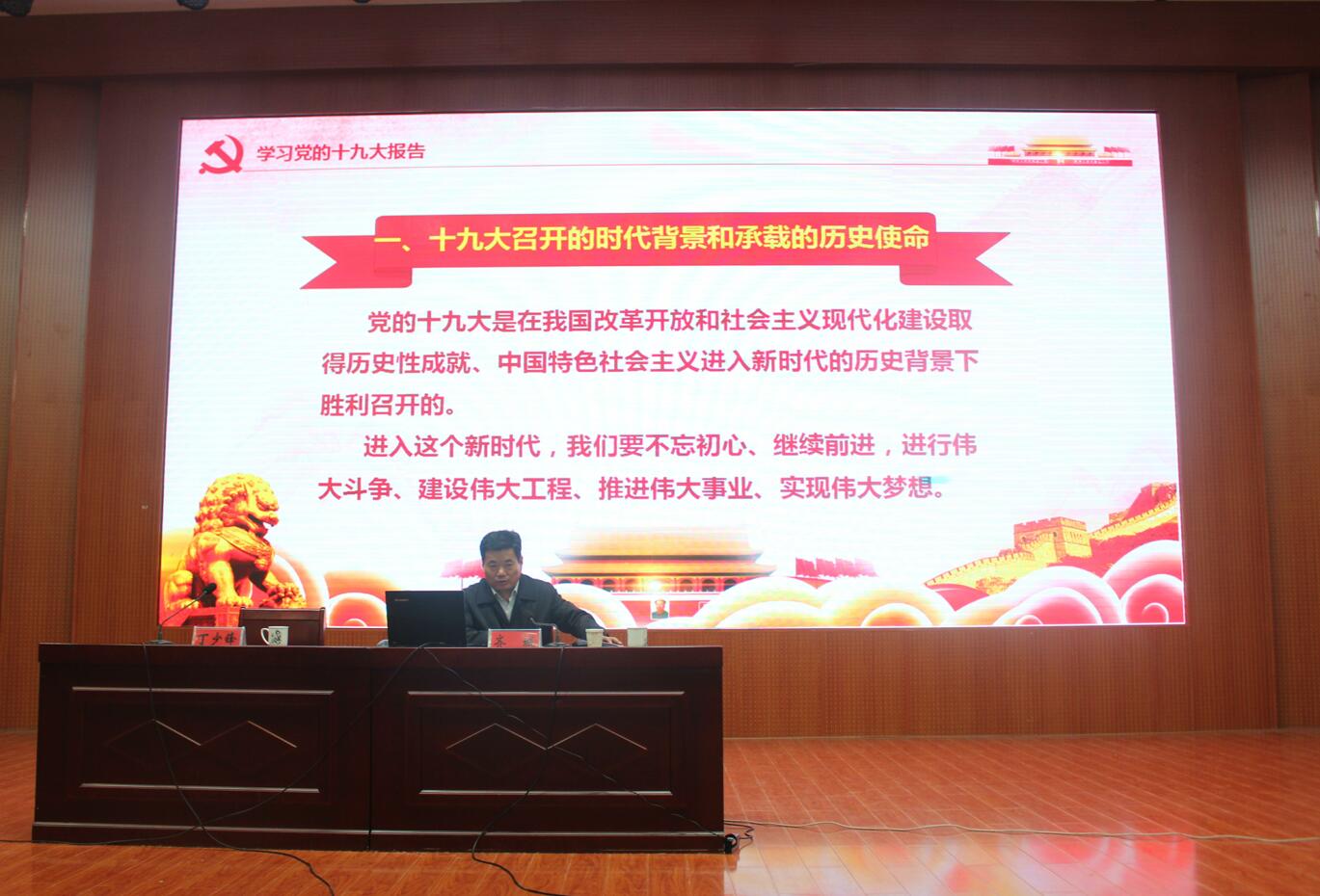 为深入学习贯彻党的十九大精神,11月10日晚,副董事长齐城在逸夫楼报告厅作了《面向新时代的政治宣言和行动纲领——党的十九大报告学习体会》的专题辅导报告,365英国上市公司、文公司、外国语公司党政领导班子成员、教师党员及五百余名员工代表聆听了报告会。报告会由党委宣传部部长丁少峰主持。