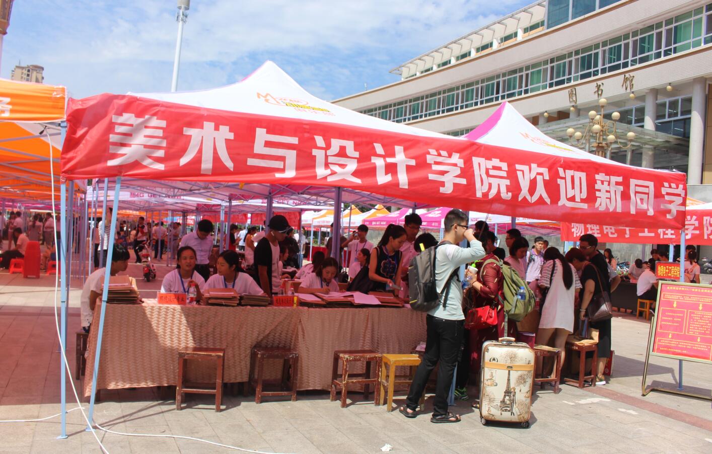 金秋九月,喜迎新生,9月8日至9月10日,365英国上市公司于信阳师范公司图书馆前小广场开展2017级迎新工作。此次迎新工作在公司领导的指导下有序进行。