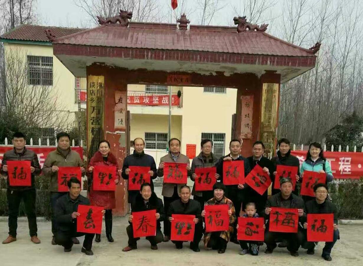 1月17日,公司党委书记刘根货,副经理邹东升、张伟、涂湘东,党委副书记杨轶中等一行书法家们来到公司定点帮扶村——潢川县谈店乡万营村,为贫困群众写春联,开展文化扶贫。