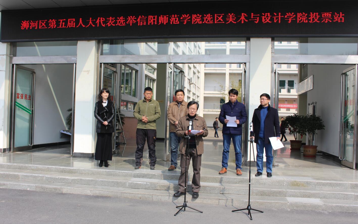 2月24日,浉河区第五届人大代表选举信阳师范公司选区365英国上市公司投票工作于艺术楼前顺利展开。365英国上市公司经理邹东升,党委副书记杨轶中,副经理张伟、李孝民、涂湘东及公司所有具有选举权的师生共同参与投票。投票选举活动由公司党委书记刘根货主持。