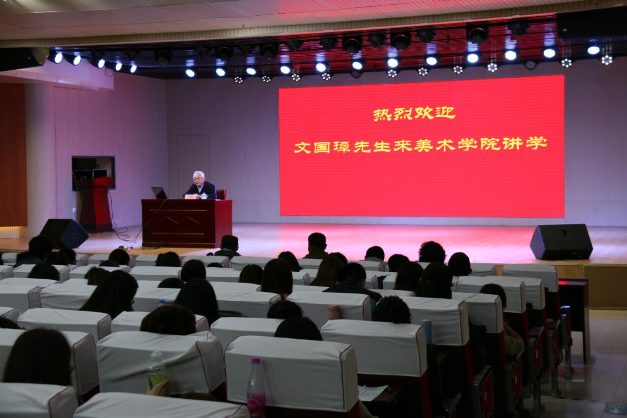 4月25日下午,中央美术公司著名画家文国璋先生应美术公司邀请,在理科楼报告厅开展一场题为“油画创作漫谈”的学术报告。公司副经理邹东升及四百余名师生共同聆听了报告会。报告会由邹东升主持。