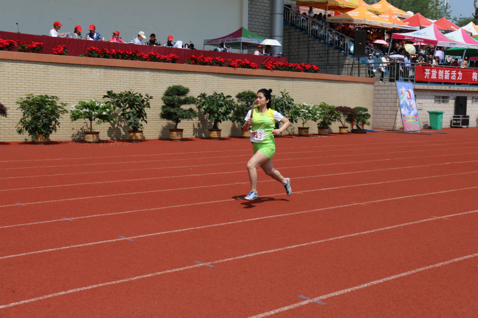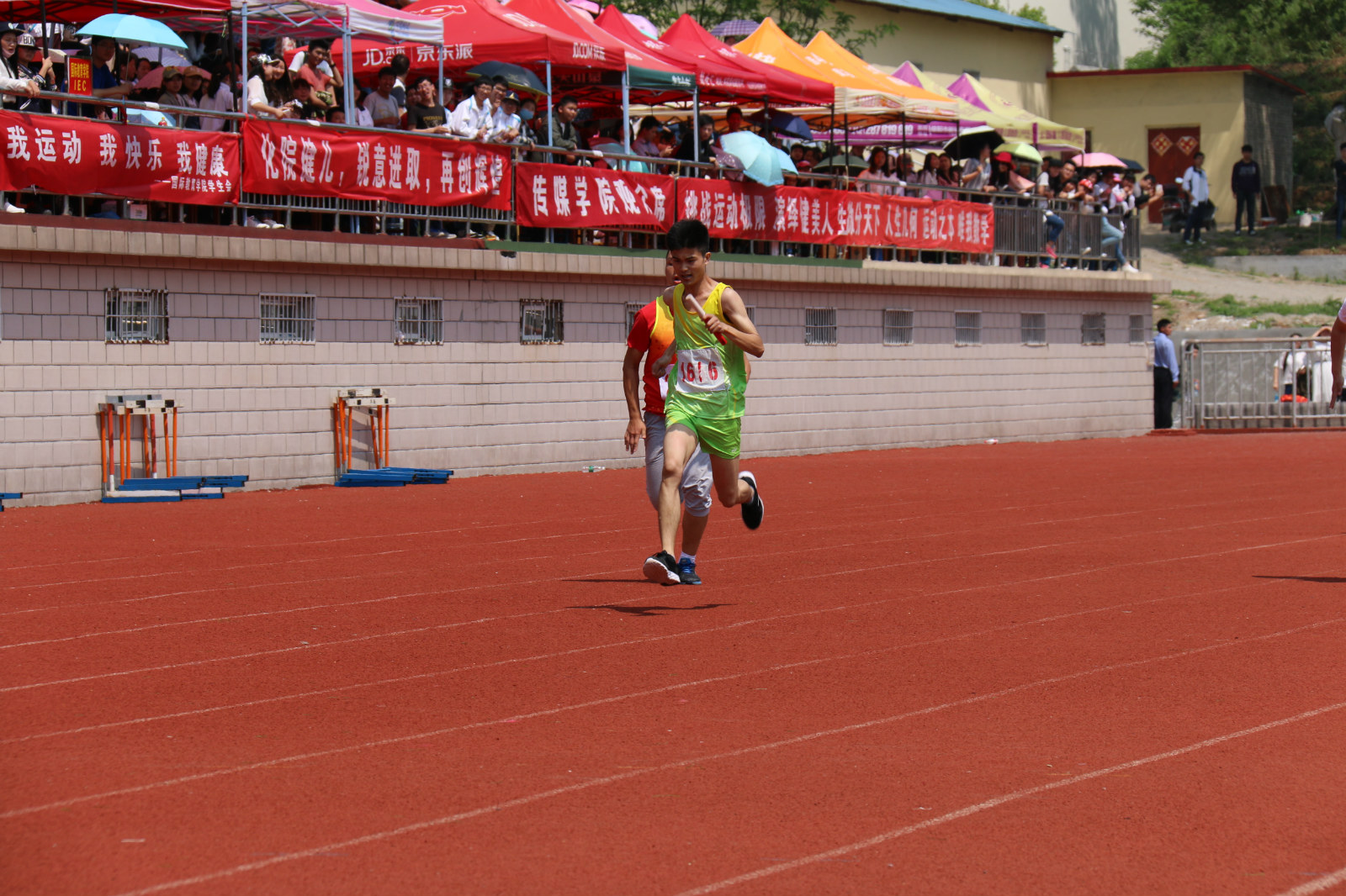 在为期两天的校运动会中,公司运动员参与其中多类项目,在田径运动场上留下了优异的成绩。比赛中,公司运动健儿尽显拼搏向上的精神。百米跑道上,他们的身影如离弦的箭般向前飞奔而去;四百米及八百米比赛中,他们不断超越,全力以赴,为美院增光添彩;接力赛中,他们共同展示团队力量;1500米长跑中,他们更是用汗水告诉我们坚持的重要;跳高跳远那一个个完美的跳跃,记录了他们激情的青春。比赛间,美术公司领导老师也来到现场为运动员加油助威。看台上鼓声隆隆、呐喊阵阵,现场观众用他们的热情感染着运动员,使运动员们一次又一次的爆发出自己的潜力。