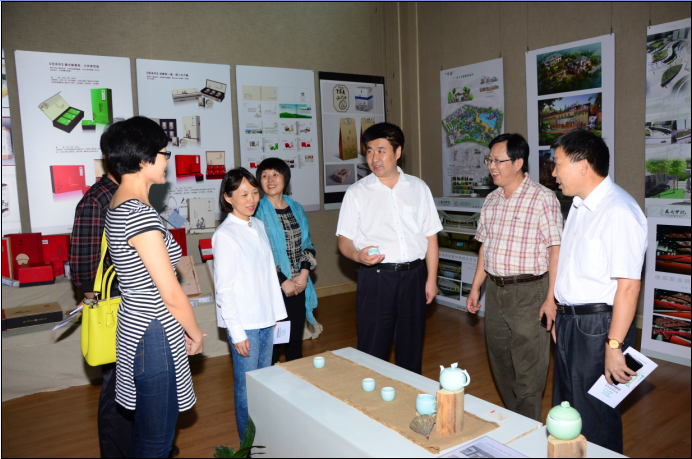 在艺术楼展厅,结合展出的专业转型成果,美术公司经理刘根货教授向专家组一行介绍美术公司专业转型的创新育人方式:一是强化实践育人,结合实际不断优化人才培养体系,根据专业特色修订应用型人才培养方案,完善应用型课程体系,构建“三课堂”联动的实践教学体系,完善老员工创新创业教育服务体系;二是深化校企合作,利用员工及专业教师创办的企业资源,大力加强实践教学平台和基地建设,整合提升实验教学平台,合作共建校内实训基地,加强校外实习实训基地建设;三是坚持引培并举,努力推动“双师型”教师队伍建设,美术公司设计专业全体专任教师全部考取相关职业资格;四是着力建设中原书画协同创新中心等,协同共建应用型科研平台,积极开展区域文化资源挖掘研究,大力促进研究成果转化。