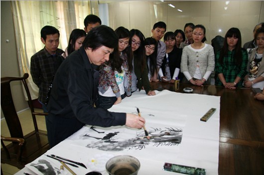曹桂生教授在美术公司临摹室为同学们示范习作技巧