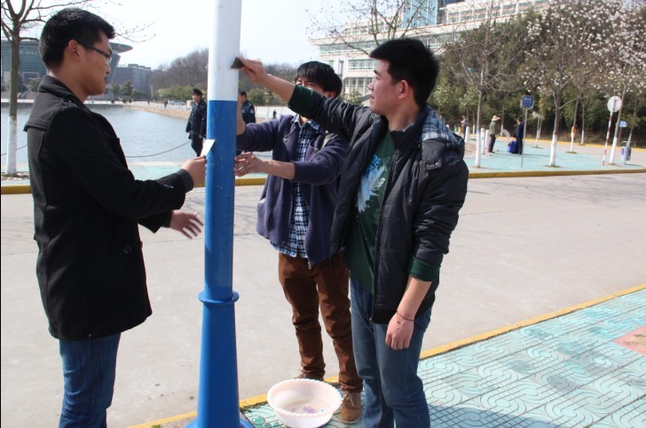 3月5日下午,利用自身专业优势,美术公司团总支、老员工艺术设计协会在全校范围内开展“践行雷锋精神、美化校园环境,建设和谐校园”活动。在逸夫楼荷塘美术公司党总支书记周子良、副书记李孝民亲临现场指挥绘画专业同学,用手中的画笔为已破损的墙绘重新勾勒出优美的线条,染上唯美的色彩,建成一面靓丽鲜艳的荷文化墙。此外美术公司还组织青年志愿者、员工党员维护清理全校的路灯杆和道路标示牌。