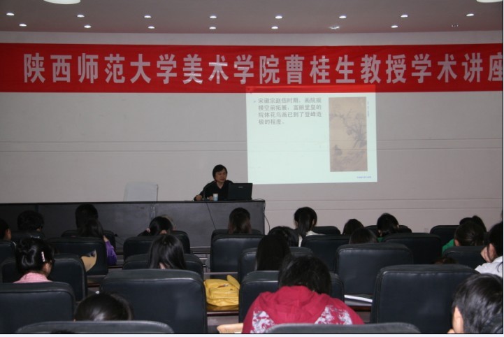 4月23日,应美术公司邀请,陕西师范大学美术公司曹桂生教授来公司讲学。曹桂生教授在艺术楼报告厅为美术公司200余名师生作了题为“中国画的艺术与审美”的学术报告。报告会由美术公司副经理汪俊林主持。