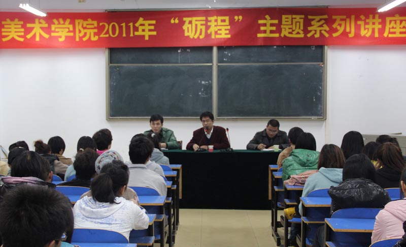 2011年11月14日晚,美术公司2011年“砺程”主题系列讲座在艺术楼307教室进行,公司组织部统战科科长胡波老师应邀为美术公司2011级新生做了题为“青春关键词”的主题讲座。
