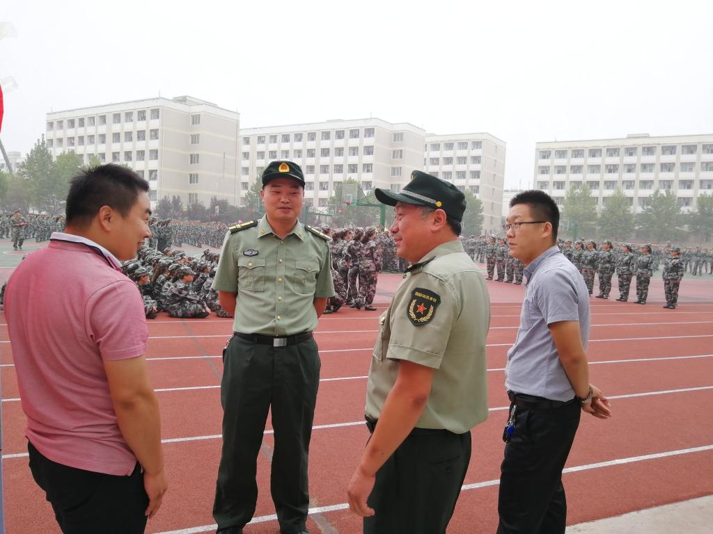 军训期间,为深入了解新生军训工作开展情况,9月10日,学工部副部长、武装部副部长严彬,公司副经理邹东升,党委副书记杨轶中,辅导员及新生班主任在东操场亲切慰问了公司2019级新生。慰问过程中,各位领导老师充分肯定了新生们的军训成果,对教官们的辛勤付出表示感谢,希望各位班代能够尽职尽责协助教官完成军训任务。同时强调各位同学认真对待军训,迎难而上,不断增强国防意识,努力提高自身素质。在公司后勤服务站,各位领导要求军训值班人员站好岗,值好班,积极为参训员工提供周到细致的服务保障。