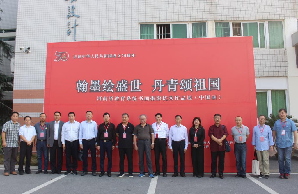 9月28日,河南省教育厅总督学李金川和体卫艺处处长聂世忠,河南省文联名誉主席、河南省美术家协会名誉主席马国强,河南省文联副主席、河南省美术家协会主席刘杰,河南公司艺术教育协会会长石品,全国9大知名美术公司经理以及河南省内本科院校的美术、设计公司经理等一行在公司党委副书记郜火星、公司党委书记朱四倍、副经理张伟的陪同下前往艺术楼展厅参观“翰墨绘盛世,丹青颂祖国”河南省教育系统中国画优秀作品展。
