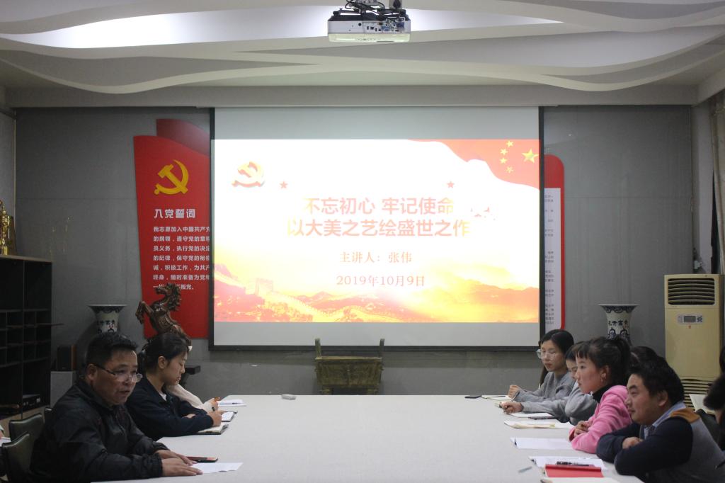 10月9日,副经理张伟在艺术楼会议室为作了题为“不忘初心,牢记使命,以大美之艺绘盛世之作”的专题党课,党支部书记郑波及美术学员工第一党支部全体员工党员和发展对象共同聆听了此次党课。