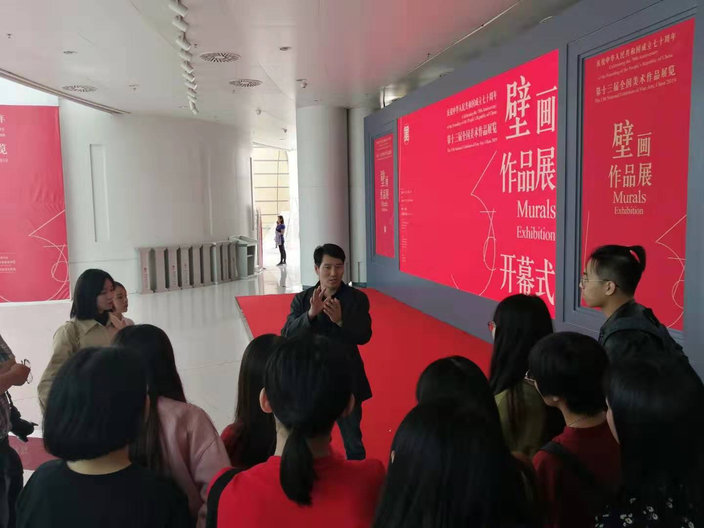 今年适逢新中国成立70周年,五年一届的全国美术作品展览,是全国美术界五年来发展阶段的全面检阅与展示。壁画作品凝聚了壁画艺术家对时代的真切感受和对艺术的真挚追求。通过此次外出实践教学活动,进一步开拓了研究生的学术视野,对研究生的学术生涯规划、艺术创作方向确定具有很强的指导性。