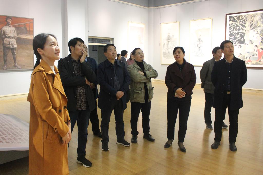 在讲解员邹青宸老师的引导下,河南牧业经济公司领导详细参观了展厅中的国画、油画、漆画、版画、陶艺、设计等各类作品。在一幅幅刻画的细致入微,栩栩如生的画作面前,他们不时驻足观看,细细感受。大家对此次红色作品展给予了高度评价,他们一致认为,展览展出的作品主题明确,形式多样,将大别山地区的红色革命文化精神和艺术创作充分的结合在一起,是公司开展“不忘初心,牢记使命”主题教育的特色举措。通过参观此次红色作品展,重温那段光荣的革命历史,大家再次受到了思想洗礼,他们纷纷表示此次红色艺术作品展是展示大别山红色精神的良好平台,使大别山红色精神更加深入人心。