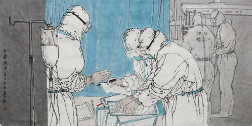 他们挥丹青画笔,凝创作之力,以大美之艺、大爱之心投入到这场防控战“疫”中来,以自己的实际行动践行着初心使命,创作了众多动人心弦的疫情防控为主题的国画、瓷板画、海报、书法、速写等多种形式的作品。