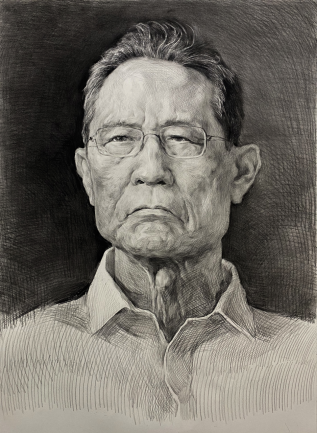 这幅肖像画的思路很简单,就是在传统上一贯使用的伟大典型人物的肖像画模式,比如我们经常看到的领袖像,就是这种模式。在疫情初期,什么都不确定不可控的情况下,突出宣传在这一领域具有典型意义的钟南山院士,会起到一个很强示范作用,能让舆情归一、万众一心。所以在这种思想下,作者选择这样一种传统的表现方式把这幅肖像画创作了出来。