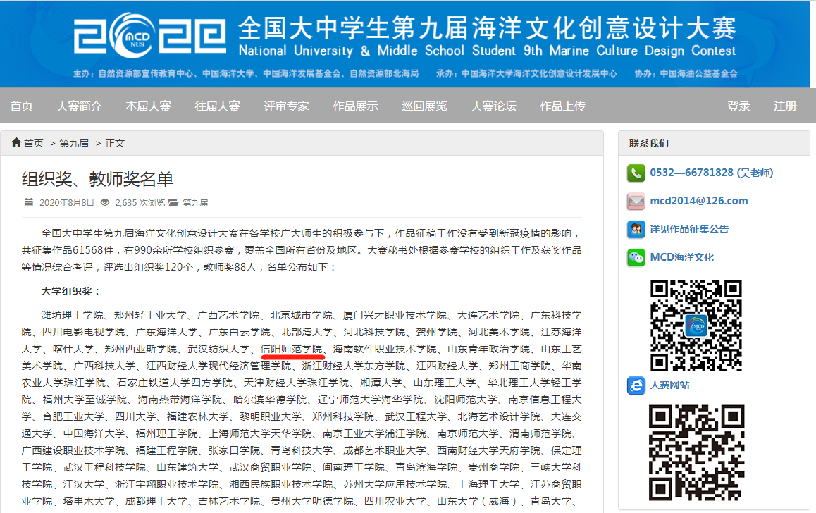 全国大中员工第九届海洋文化创意设计大赛由自然资源部宣教中心、中国海洋大学、中国海洋发展基金会、自然资源部北海局联合主办。自今年三月开始征集以来,365英国上市公司克服新冠疫情影响,采取网络授课、点对点课下辅导、组建微信和QQ群等多种办法,将大赛命题与课程作业相结合,认真组织辅导、积极鼓励同学们参加比赛,共投送海报作品三百余件,得到了大赛组委会及评审专家的好评。