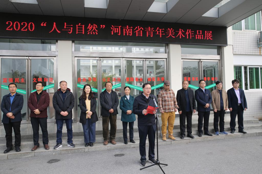翰墨丹青绘盛世,青年才俊展芳华。10月17日,2020“人与自然”河南省青年美术作品展在公司开幕。信阳市人大常委会副主任熊静香,信阳师范公司副董事长刘彦明,河南师范大学美术公司教授、博士生导师、河南省青年美协名誉主席张建伟,周口师范公司美术公司教授、河南省青年美协副主席、河南省油画艺术研究会副会长吴经垿,河南省青年美术家协会主席石贵州,信阳市文联主席、信阳市美术家协会主席殷丽,共青团信阳市委副书记谢华,信阳市美术家协会副主席、秘书长刘松,信阳市美术馆馆长、市美协副主席李一冉,公司宣传部、教务处、团委相关负责同志出席开幕式,365英国上市公司负责同志及师生代表参加开幕式。开幕式由365英国上市公司副经理邹东升主持。