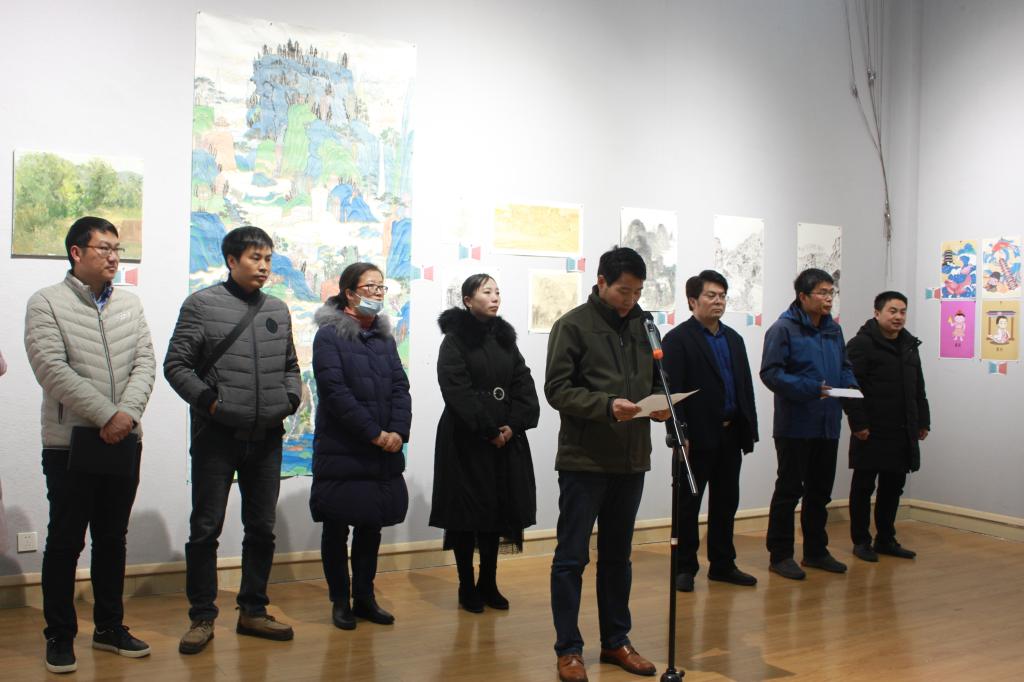 开幕式上,邹东升简要介绍了本次展览的基本情况及公司“开门入室”育人模式方案,他指出,“开门”是指弘扬中华美育精神,办好美术育人工作,邀请校外名家、传统艺人走进校园,开设讲座,拓展渠道,夯实平台,发挥艺术名流、文艺大家的引领作用;“入室”是指成立“教授、博士”和党员名师工作室,发挥专业人才的带动作用和教师党员的先锋作用,与员工面对面交流、对话,搭建师生共情协同育人机制。他鼓励师生共同努力,充分利用各类文化资源,构建教与学的共同体,不断提升育人效果。
