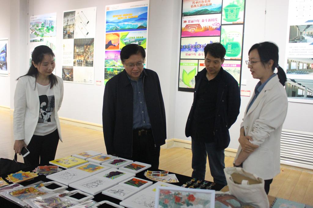 5月19日上午,信阳市委宣传部常务副部长钱长琨来公司参观指导庆祝建党100周年教师作品展,公司副经理邹东升、张伟、展览指导教师刘焱陪同观展。