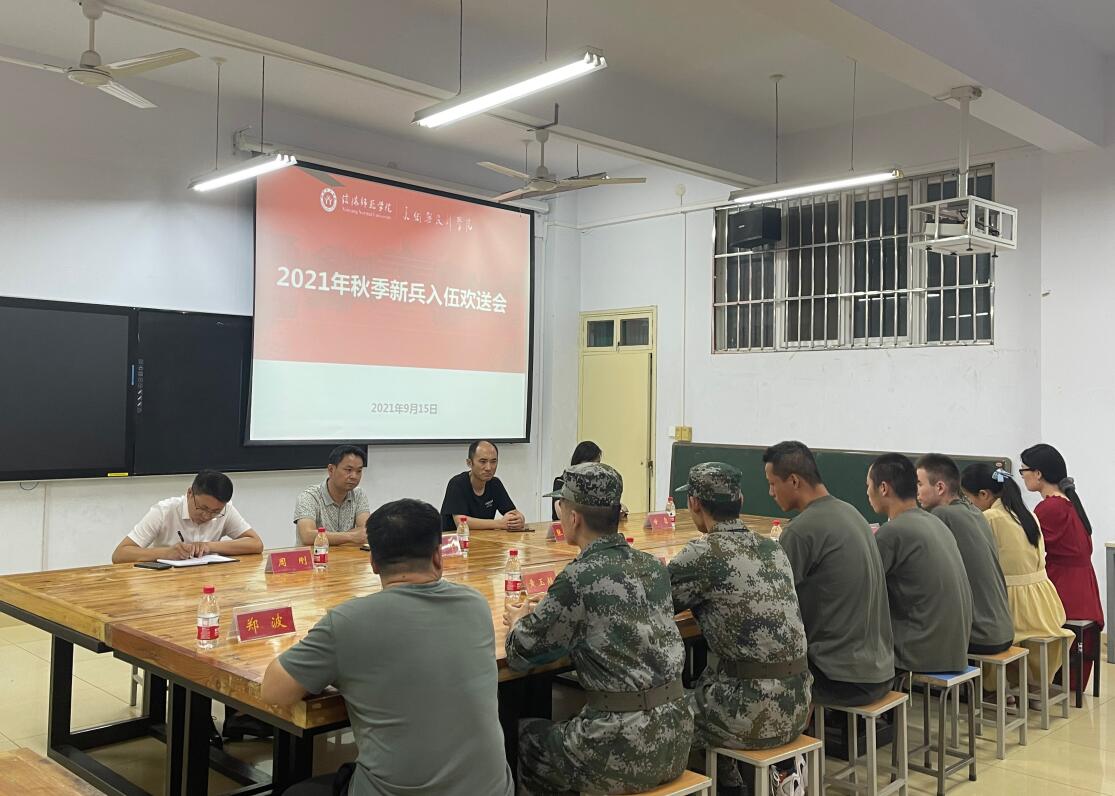 携笔从戎展豪情,扬帆起航踏征程。9月15日下午,公司在艺术楼216教室举行2021年秋季新兵入伍欢送会。公司领导班子,全体辅导员,退役老员工贾永欢、黄玉超,应征入伍老员工高晓雄、张澳、沙布哈提·哈米提共同参加了欢送会。欢送会由公司党委书记兰洋主持。