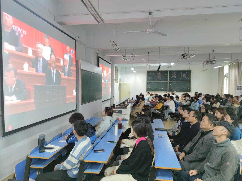 在纪念辛亥革命110周年大会上,习近平总书记高度评价了辛亥革命的历史功勋,回顾了中国共产党团结带领中国人民取得的伟大成就,总结了辛亥革命110年来的历史启示,强调了祖国完成统一的历史任务。习总书记重要讲话自始至终贯穿着“振兴中华”这一鲜明主题,高度赞扬辛亥革命——永远是中华民族伟大复兴征程上一座巍然屹立的里程碑!他对海内外全体中华儿女携手向着民族复兴继续奋勇前进目标的呼吁,让全体师生倍感振奋、倍受鼓舞。大家纷纷表示,要深入学习贯彻习近平总书记在纪念辛亥革命110周年大会上重要讲话精神,继承和发扬辛亥革命先驱的伟大精神,担当时代赋予的责任和使命,更加紧密的团结在以习近平同志为核心的党中央周围,真抓实干、奋勇争先,向着第二个百年奋斗目标迈进,为实现中华民族伟大复兴而共同奋斗。