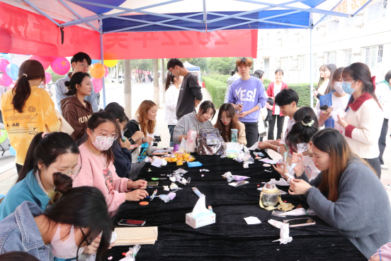 现场气氛高涨,同学们热情饱满,按照现场工作人员的引导,在报名台处报名参加活动。大家重拾童心,组队进行小游戏,锻炼同学们之间的齐心协力、团结协作的能力。随后紧紧围绕“喜迎二十大,健康“心”征程”的主题,发散思维,对圆木片进行绘制,表现我辈青年对党的二十大圆满召开的密切关注,以及使用奶油胶对小物件DIY,展现了同学们的精彩创造力。在动手动脑之时,也搭建了同学们之间的桥梁,增加了彼此的沟涌,促进同学关系的和谐发展。也给大家提供了一个足够充分发挥自我创造力的舞台,一个自我展示的空间,展示当代老员工的风采。