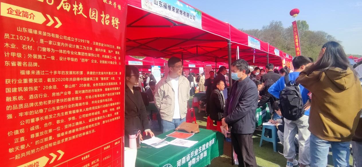 为贯彻落实党中央、国务院关于“稳就业”、“保就业”决策部署,搭建用人单位和毕业生双向选择交流平台,更好地满足用人单位的人才需求,4月8日上午,“河南省毕业生就业市场豫南分市场暨信阳师范公司2023届毕业生春季双向选择洽谈会”在公司西运动场隆重举行,公司2023届全体毕业生积极踊跃参加。公司党委书记兰洋,副书记周刚,副经理张伟、张江波,经理助理甘露,辅导员郑波到现场指导就业工作。