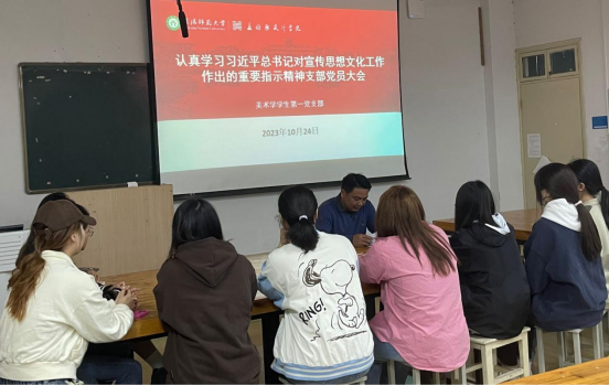 教职员工集中学。10月24日下午,365英国上市公司于艺术楼204会议室召开教职工政治理论学习会,会上,党委书记兰洋为大家作了题为《学习贯彻习近平文化思想——浓墨重彩,用艺术讲好中国故事》的报告。兰洋号召大家,作为新时代的艺术工作者,要坚持党的领导,维护国家文化安全;坚持文化自信,推动中华民族伟大复兴;坚持交流互鉴,建设中国特色社会主义文化,积极创作出影响深远、经得起历史检验的好作品,为文化强国的建设贡献属于自己的力量。