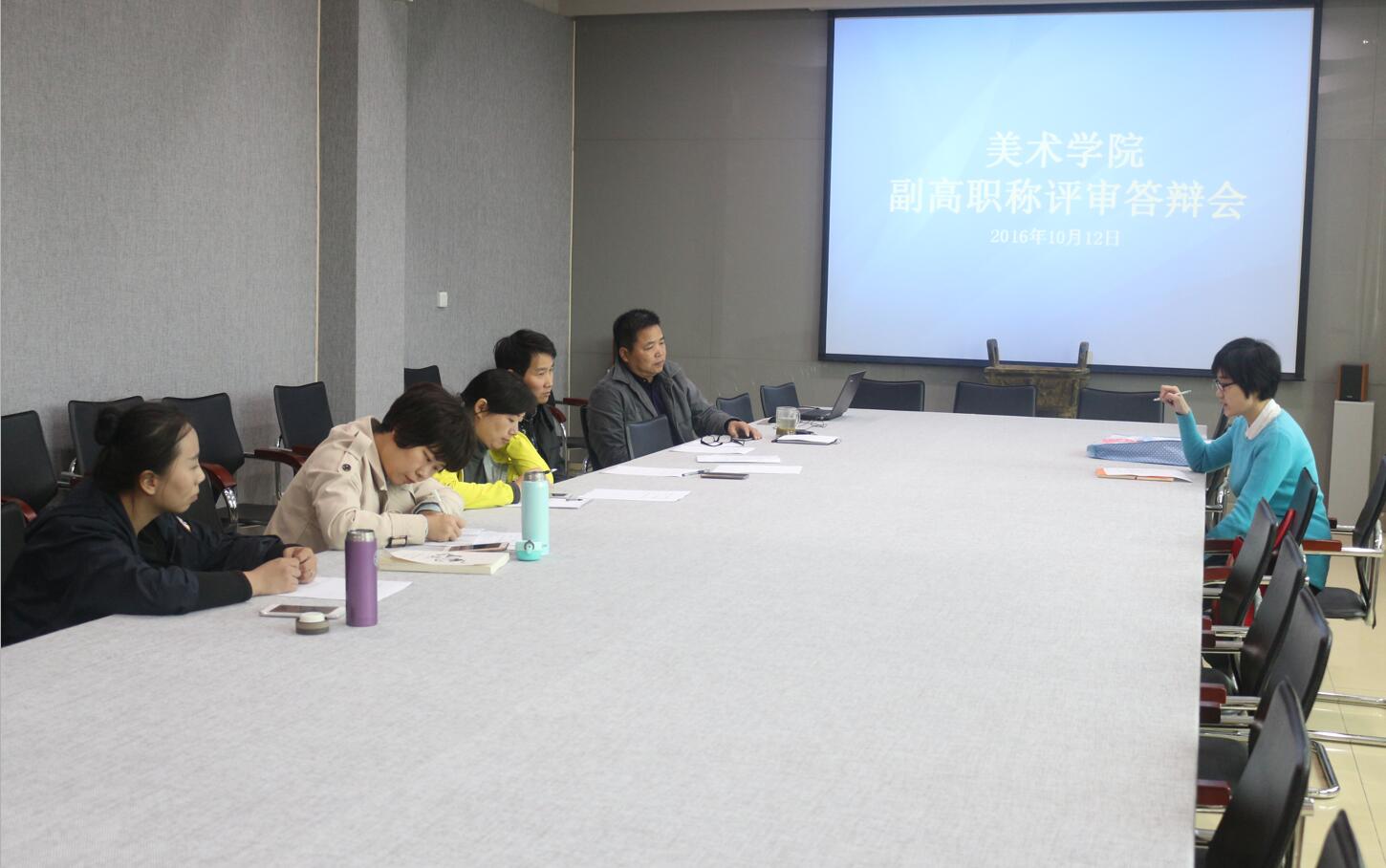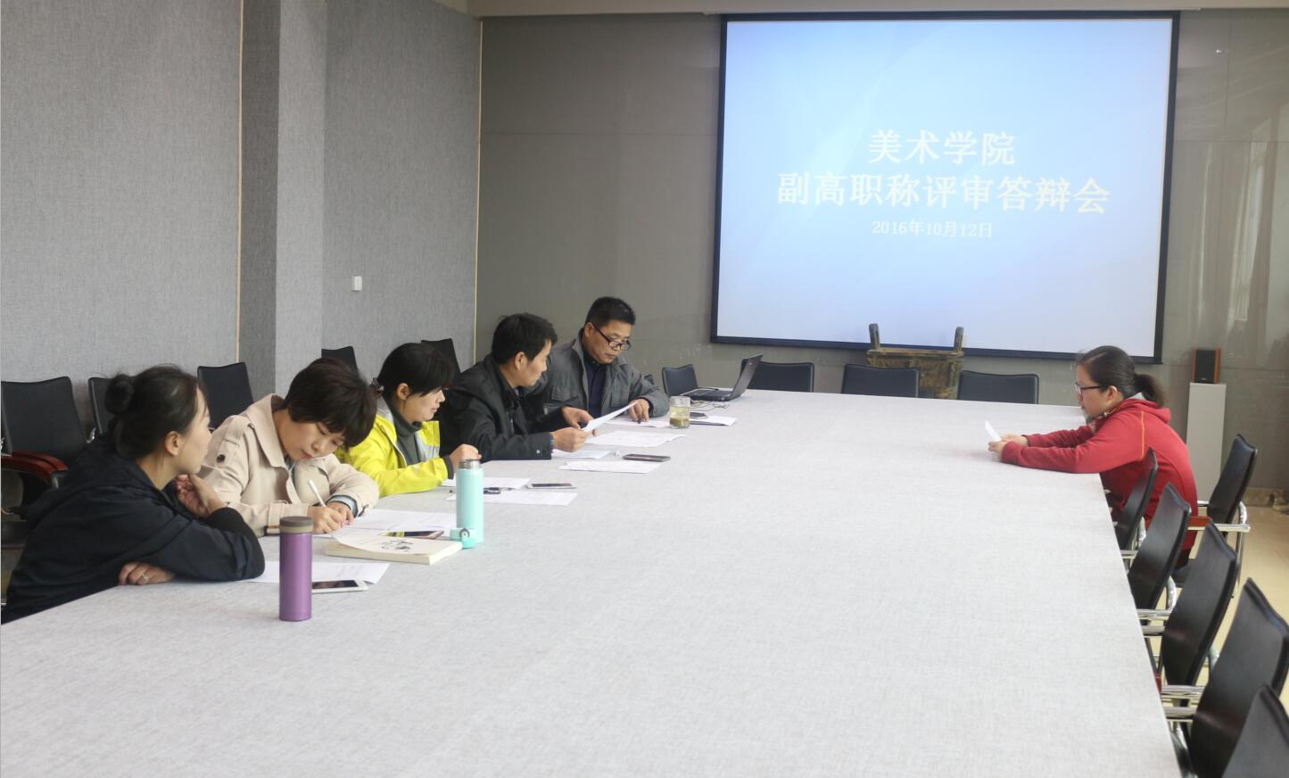 10月12日,美术公司在艺术楼二楼美术公司会议室举行副高职称评审答辩会,公司副经理张伟、邹东升、基础理论教研室主任卢敏担任评审员。答辩会共有三位老师参与,分别是何亚峰、张江波、张睿。