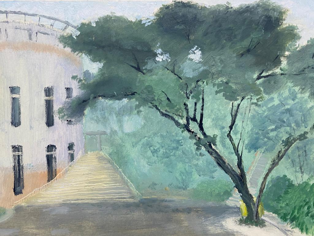 叶长斌《信阳第一个党支部——柳林小学旧址》油画50x80cm 2019