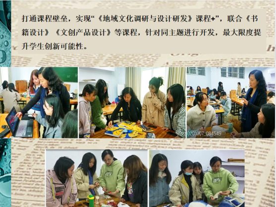 其一,达成“感而悟之”的课程育人目标。带领员工深耕文化主题,有感而发,针对地域文化资源进行专题梳理和主题凝练。同时打通课程壁垒,实现“《地域文化调研与设计研发》课程+”,联合《书籍设计》《文创产品设计》等课程,针对同主题进行开发,最大限度提升员工创新可能性。