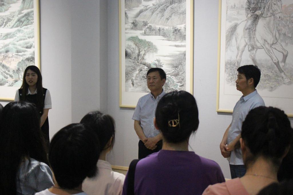 思政课前,陈登报和美术公司部分师生在艺术楼展厅一起听取了该院青年教师明政现场讲述的红色故事:“不屈忠魂留青山”——毛国兴的革命故事。
