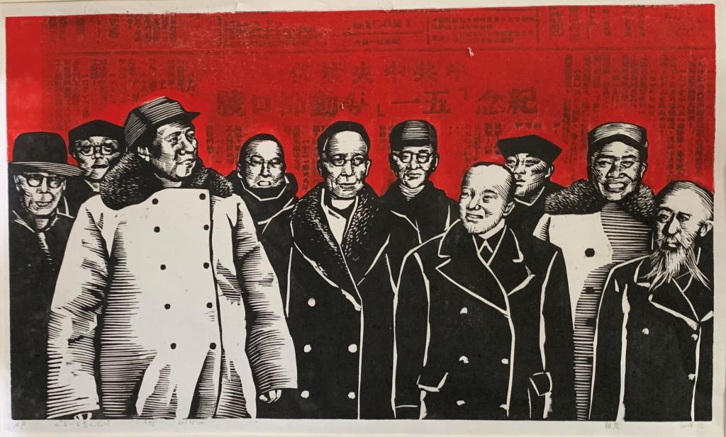 朝晨《“五一”口号之忆》版画 60x35cm 2018